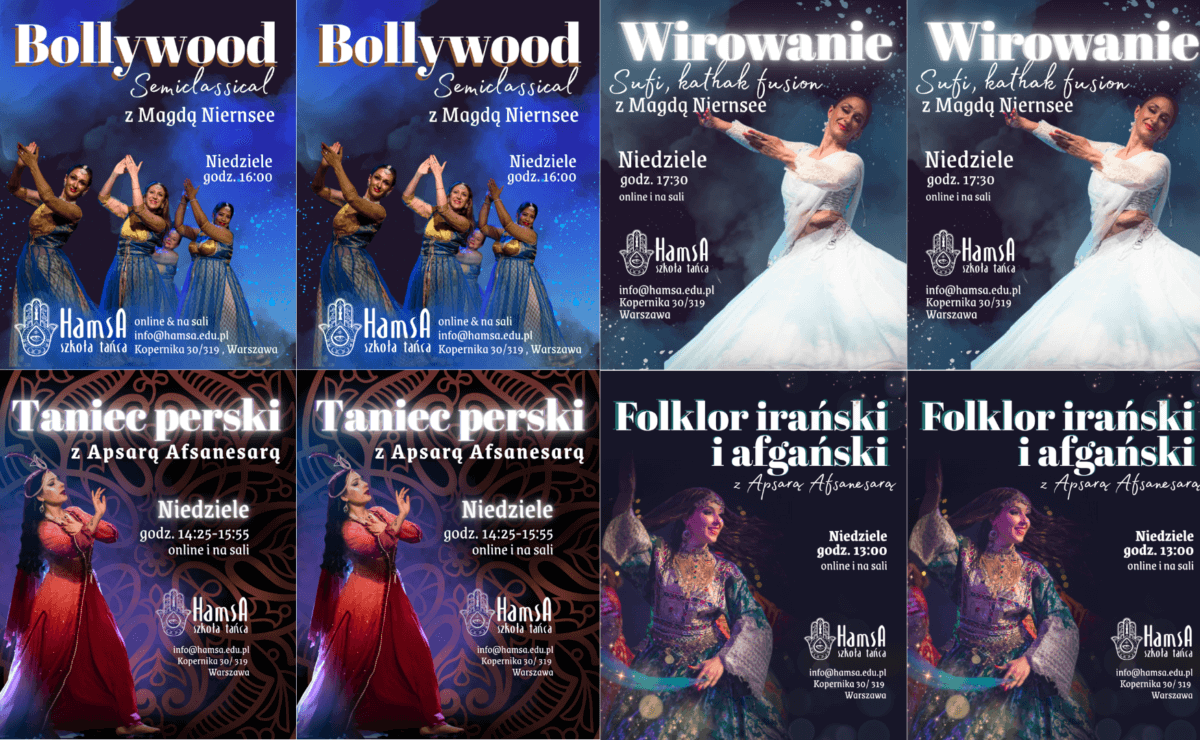 Unikalne style, które rozbudowują znaczenie słowa taniec orientalny! Taniec indyjski (Bollywood tańczony na podstawie tańca kathak), Wirowanie (Sufi, kathak fusion), taniec perski i folklor: tańce irańskie i afgańskie.